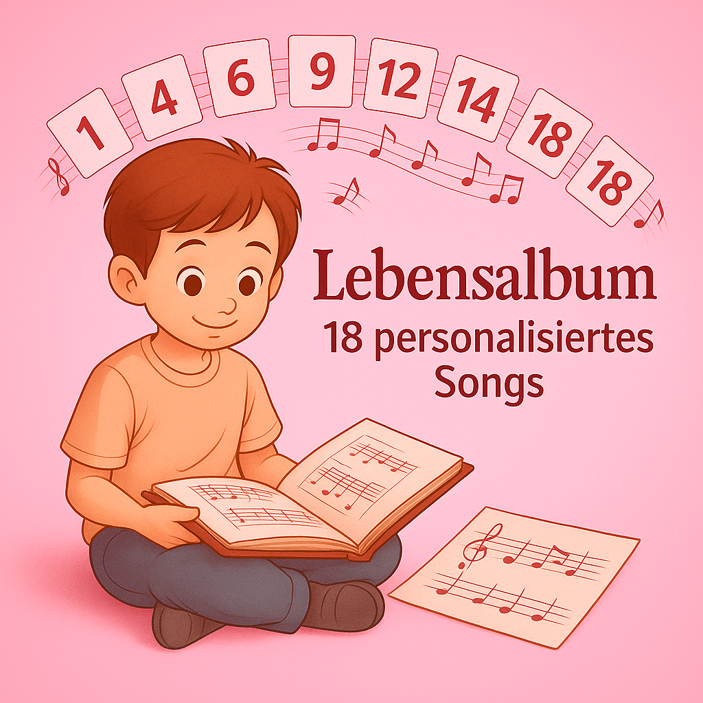 Erlebe die musikalische Reise eines Lebens mit 18 einzigartigen, personalisierten Liedern, die jedes Jahr deines Kindes begleiten und unvergessliche Erinnerungen schaffen.